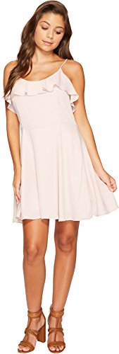 A lightweight shift dress with spaghetti strap and ruffle neckline detail.