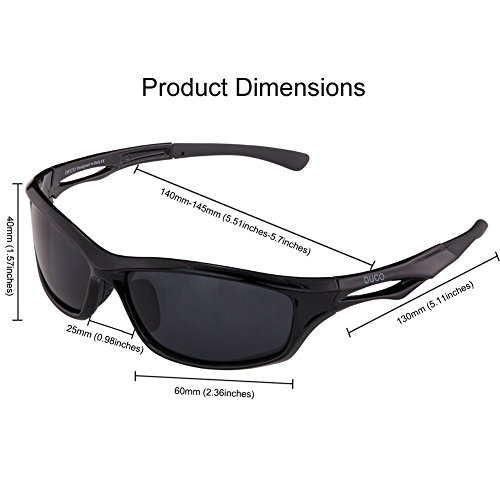 -. Feature : TAC POLARIZED LENS- Real 100% UV400 protection coating, blocks 100% harmful UVA & UVB Rays. It can eliminate reflected light glare and scattered light and protect eyes perfectly. DUCO TAC lens includes 8 layers,1 more layers than normal TAC lens. The 1st and 8th layers are shatterproof layers. The 2nd,3rd and 4th layers are UVA,UVB&UVC absorb layers. The 5th,6th are Polarized layers. The 7th is adhesive layer. The revo color will have one more layer on front lens. / LIGHTWEIGHT FRAME-TR90 frame Is Ideal For Usage By Motorcycle And Cycling Bicycle, Driving, Running, Fishing, Racing, Skiing and Climbing, Trekking Or Other Outdoor Activities Enthusiasts, Only Top Brands Will Use TR90 Material. Don't be fooled by other brand saying frame material of Tr603 Tr62 Tr628, they are Plastic frame, which is not TR90. / PRODUCTS DIMENSION- Lens height:40 mm (1.57inches); lens width:60mm (2.36inches); leg length:130mm(5.11 inches); nose bridge:25mm (0.98inches); Total length: 140mm-145mm (5.51-5.7 inches) / LIFETIME BREAKAGE WARRANTY ON FRAME &LENS--All DUCO Sunglasses are provided lifetime warranty. Whatever the reason is, you can have Lifetime Breakage Warranty on Frame & Lens. / 30 DAY MONEY BACK GUARANTEE--100% satisfaction guaranteed. We are not only selling sunglasses but also providing excellent customer service. We promise if you are not happy with DUCO glasses within the first 30 days, we will refund you without any reason. SO NO RISK ON TRY!