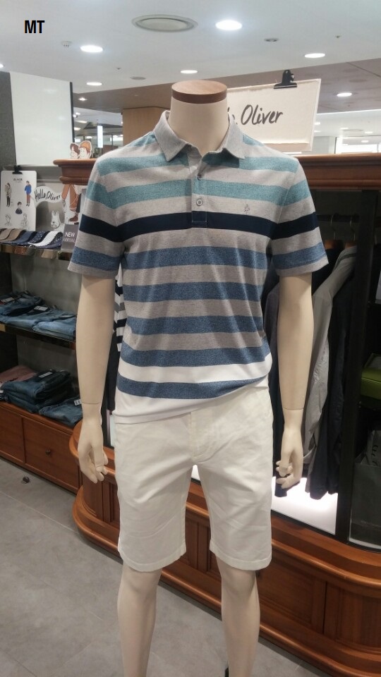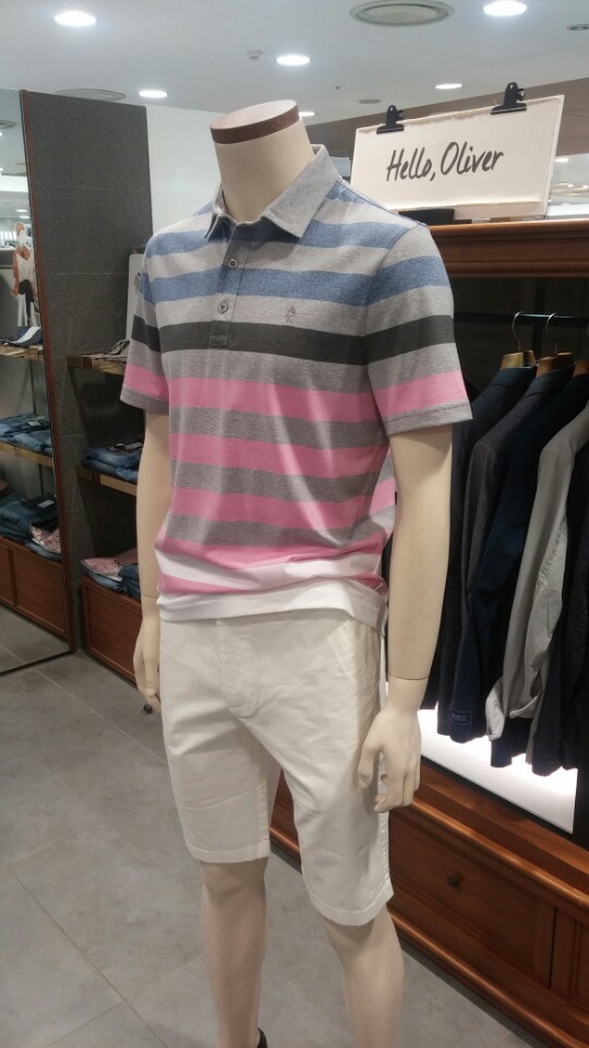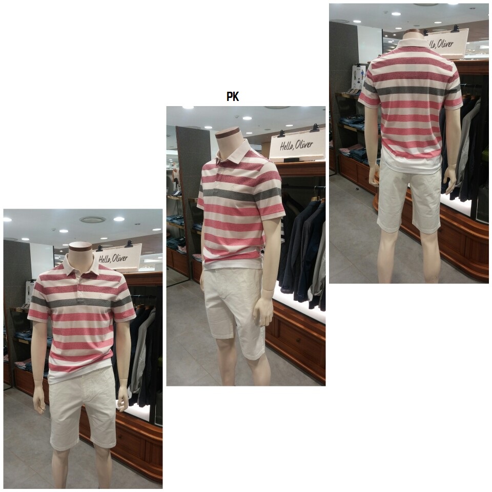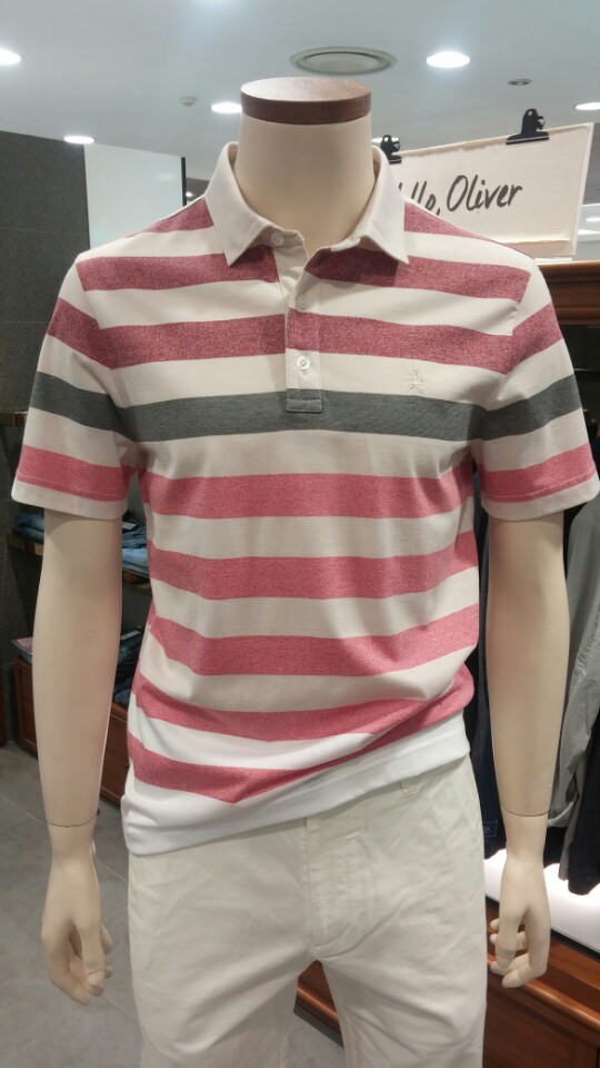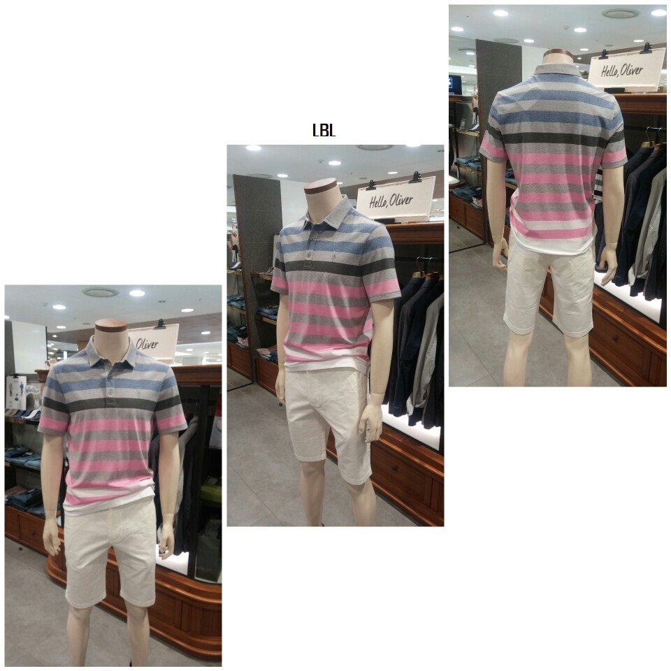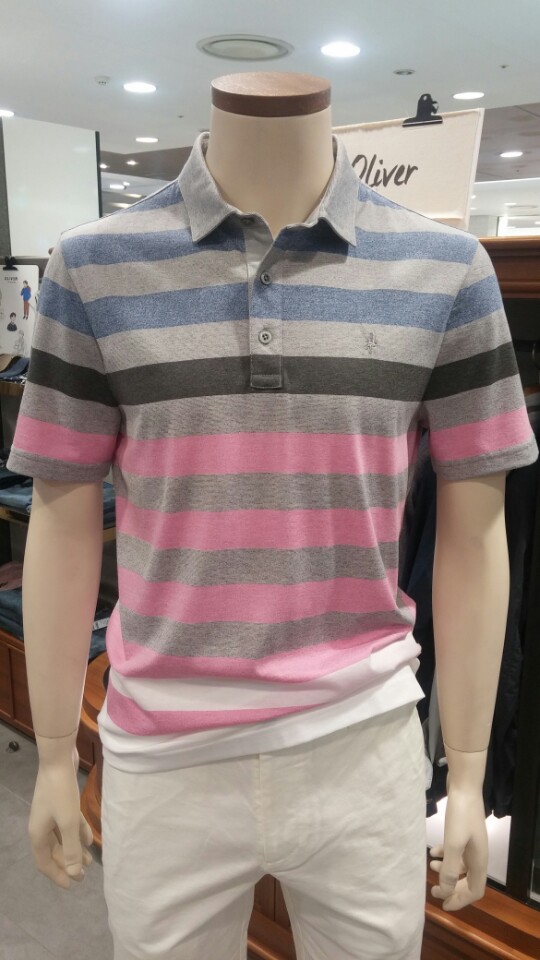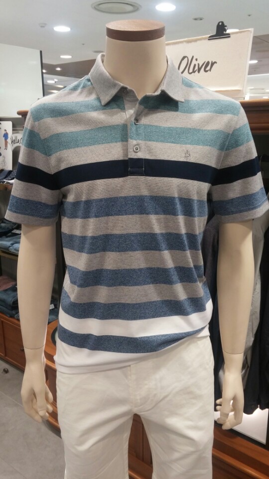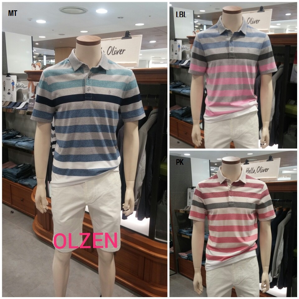 OLZEN  2018 년 S/S  블럭 스트라이프 카라 티셔츠