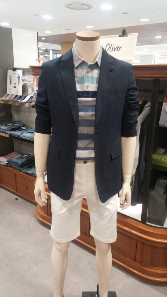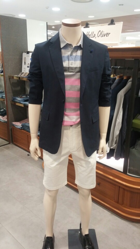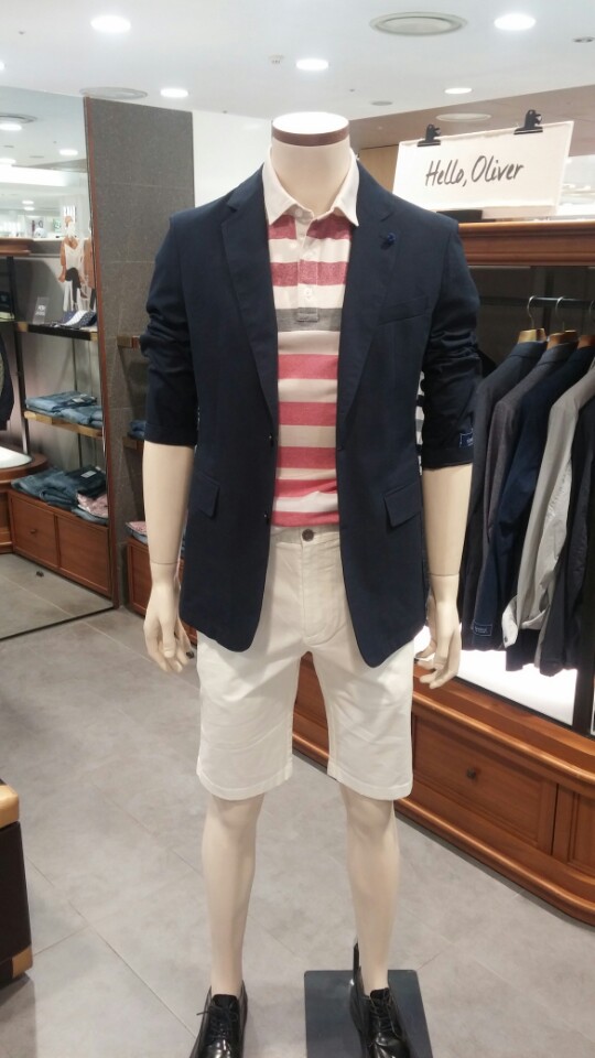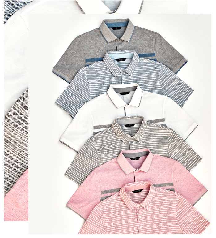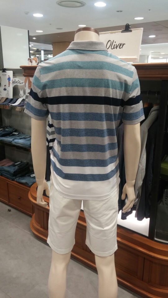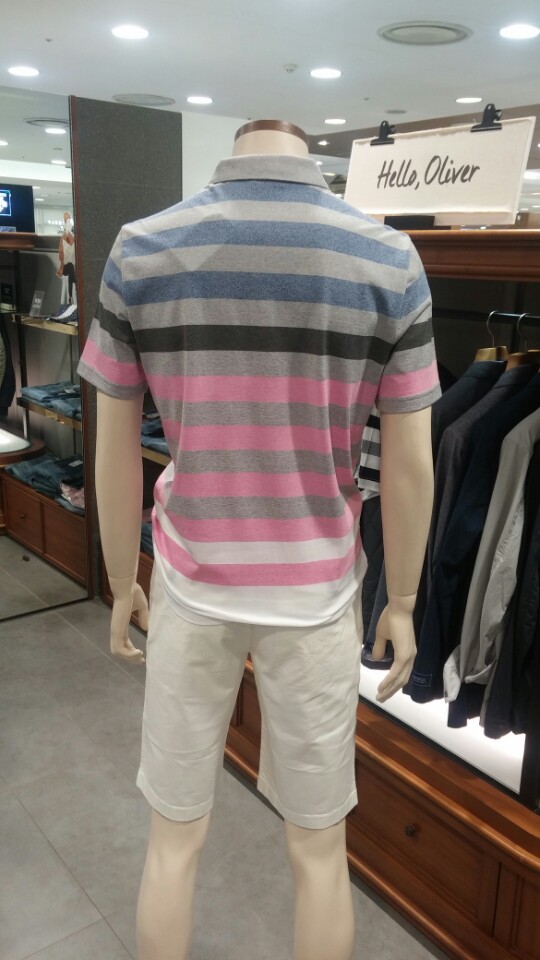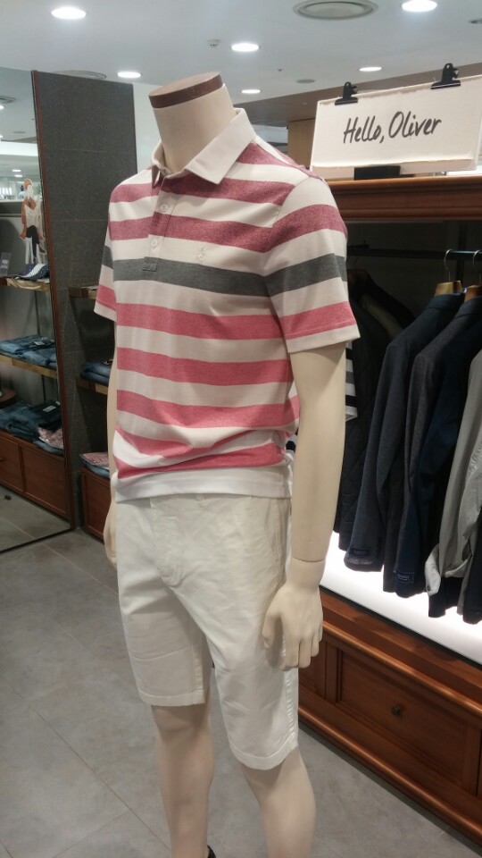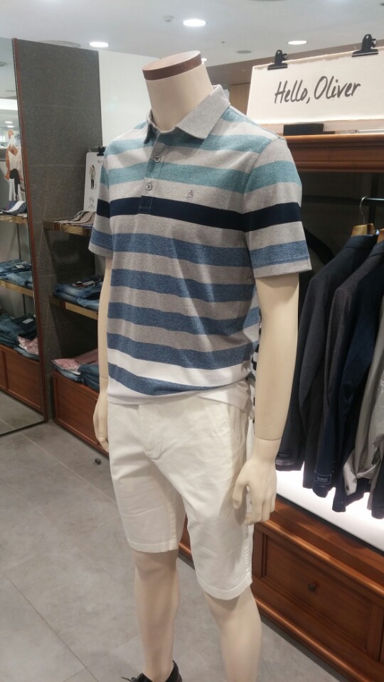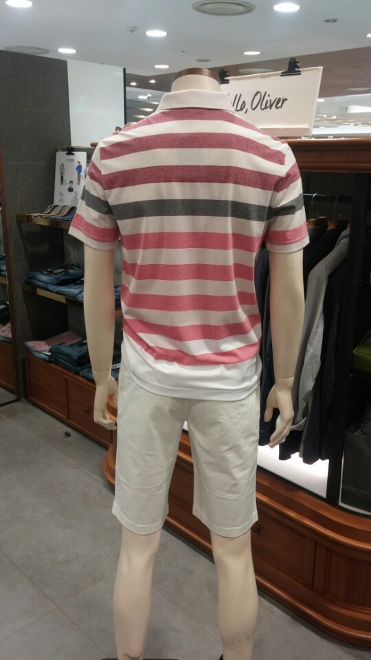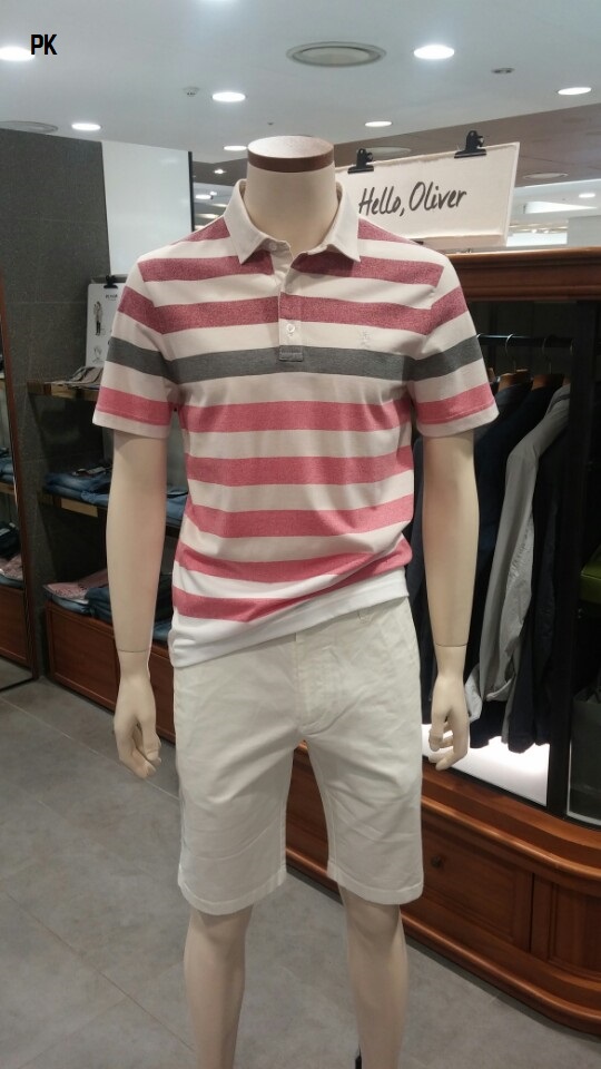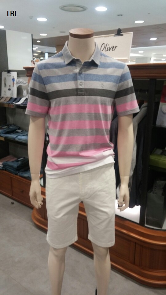 OLZEN  2018 년 S/S  블럭 스트라이프 카라 티셔츠