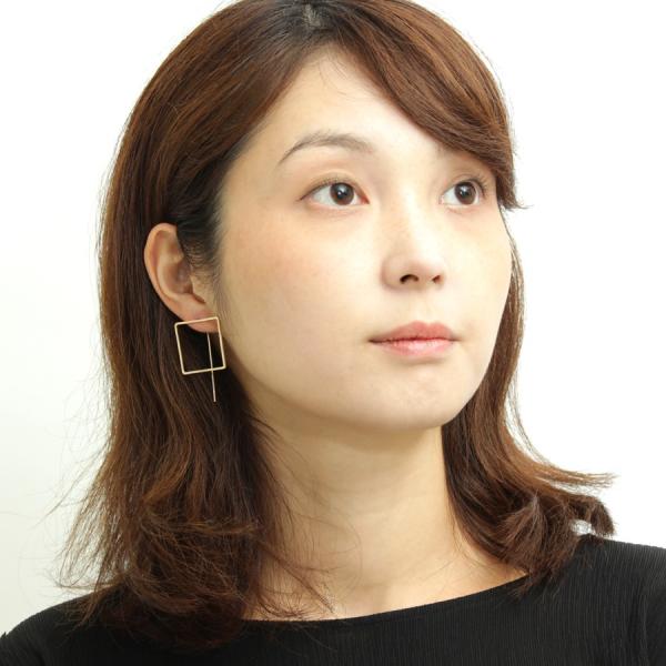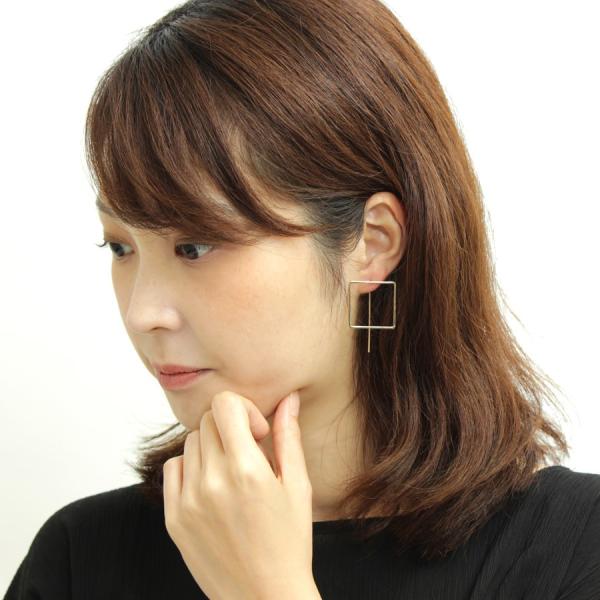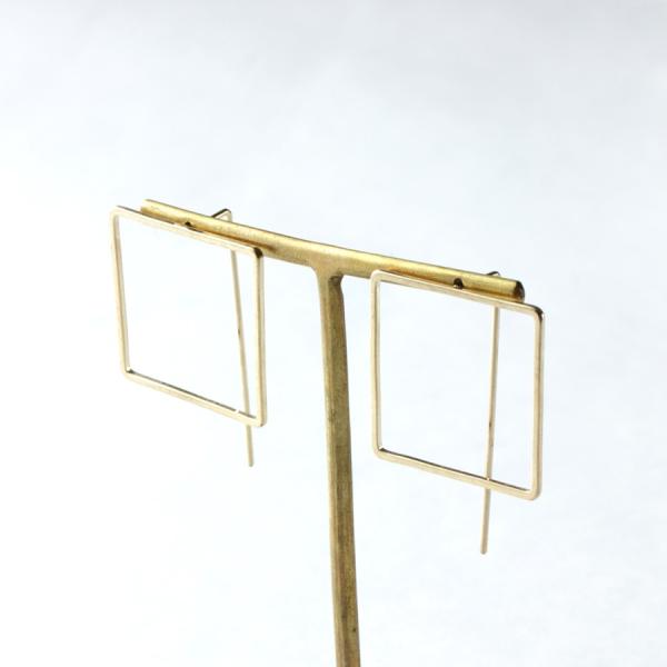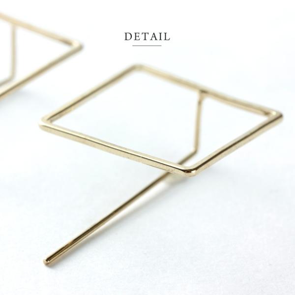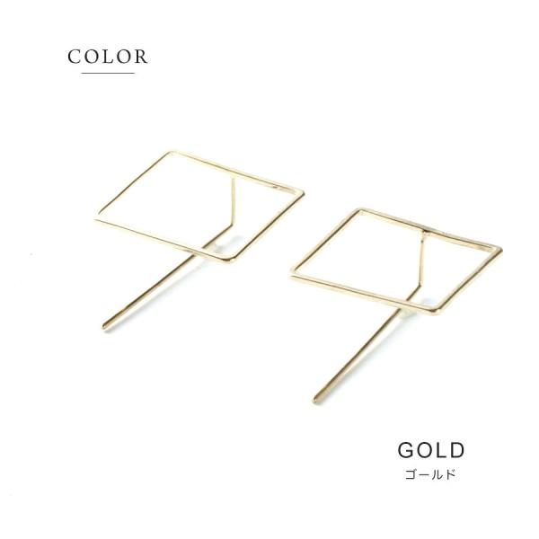 商品名:ピアス レディース フック スクエア 大ぶり シンプル おしゃれ アクセサリー 結婚式 ゴールド