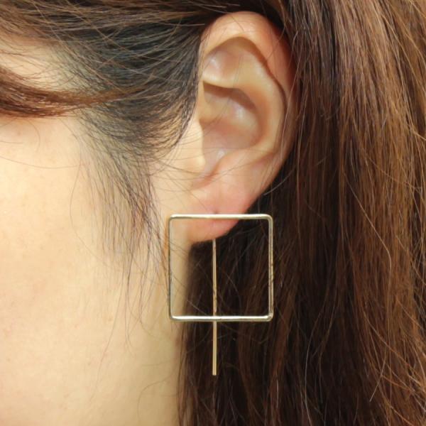 『スクエアのシルエットがクールな印象のフックピアス 』
