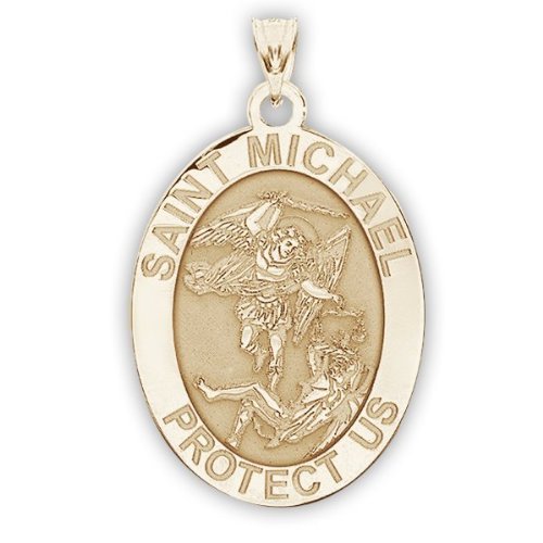 -. Title : Saint Michael OVAL Religious Medal - 2/3 X 3/4 Inch Size of Nickel, Sterling Silver