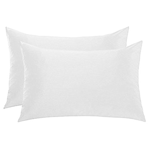 SET OF 2 SATIN PILLOWCASES WITH ZIPPER CLOSURE STANDARD SIZE 19 X 25" CHOICE OF COLORS (White)
