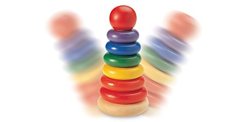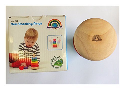 FEATURES - Multicolored Wooden Base Stand, Seven Stacking Rings and One Topping Ball