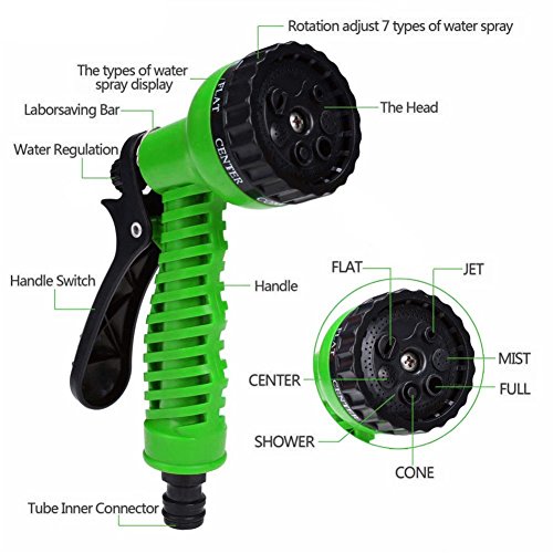 Garden Hose 25 Foot Expandable Water Hose Lightweight & Durable Expandable Garden Hose Doesn't Twist & Kink Triple Layer Latex Core & Latest Improved Extra Strength Fabric Protection (green)