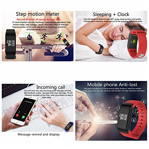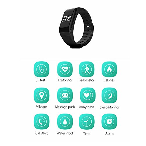 -. Feature : 【Multi-Functions】 R1 smart wristband watch have multifunctions like sports records such as pedometer, calories record,dynamic and static heart rate,blood oxygen rate,blood pressure measurements, heart rate monitoring, sleep monitoring. Basic functions such as instant messaging,date,time,anti-lost tracker,sedentary reminder. / 【Wide Compatibility】Mate for All Android and iOS Mobile Phone & Android Tablet PC,Android Mobile Phone including: Samsung Galaxy S3/S4/S5/S6/S7 Edge Note 2 3 4 5, HTC, Sony, LG, HUAWEI, ZTE, OPPO, XIAOMI,All Android 4.2 and above smartphones. IOS Mobile Phone: iPhone 6/6 plus/5/ 5s/4/ 4s. Android Tablet PC: Samsung, Nexus, Onda, Newsmy, and so on.(suitable for bluetooth 4.0,Android 4.3 ,IOS 8.0 and above version) / 【IP67 Waterproof and Brighten Screen by Lifting Wrist】 Designed with premium soft silicone watch strap and waterproof bracelet chip, effectively prevent against the harm to your wristband by of sweating or water(but we do not recommend you to wear a bracelet to swim and dive).Support brighten screen by lifting or turning wrist,It sensored automatically by the gravity sensor system,which is intelligent and convenient. / 【HD Display Screen&Long Standby Time】 High sensitive capacitive touch screen; 0.66" TFT HD LCD touch screen,Resolution ratio: 128x64 pixel. 380MAH polymer lithium battery,standby time up to 180 hours after 1.5 hours fully charged,standvy time up to 7 days! / 【Smart Phone APP Download Method】Please search''wearfit'' in app store or scan the bar code in the user manual to install it.(please ensure that the bluetooth of your smart phone is in ''open'' state for the app ''wearfit'' to make all the data accurate.) Refer to the detailed user manual if first use.
