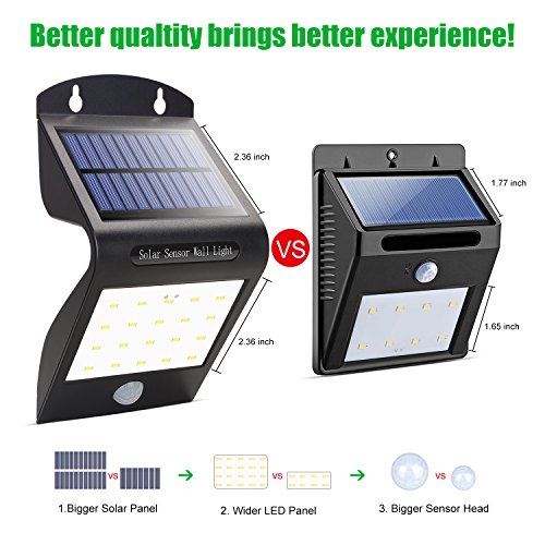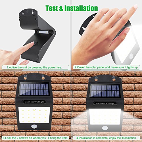 - IP65 Waterproof & Heatproof - IP65 water and heat-proof funtion makes this solid solar powered light as great porch lights, solar fence lights, solar garden lights, solar pathway lights, solar patio lights, solar step lights, solar security light etc that can be installed without fear of environmental damage.