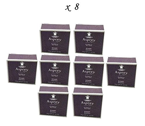 -. Feature : 8 travel sized bars of bath soap - Asprey London - Purple Water - 1.05 oz each - Hotel & Motel - Traveling / Asprey is subtle luxury, never overstated, steeped in a strong heritage of charm and individuality / Asprey's signature scent, Purple Water is definitely a standout - The color purple has always signified royalty since ancient times / Asprey holds a royal warrant dating back to 1781 and is one of the world's oldest and most respected luxury goods houses