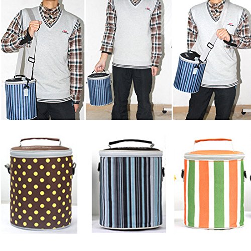 uxcell Stripes Pattern Outdoor Cylinder Shaped Food Beverage Storage Box Cooler Lunch Bag