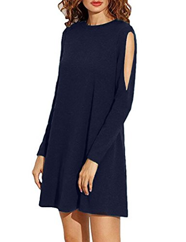 Sherosa Long Sleeve Dress, Womens Soft Shoulder Cut Out T-shirt Dress,Navy Blue M