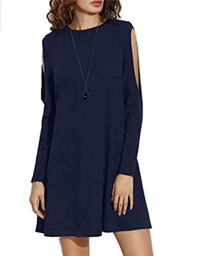 Sherosa Shift Dress, Women's Basic Cold Shoulder Long Sleeve Dress,Navy Blue S