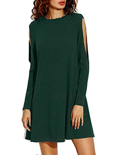 Sherosa Swing Dress, Womens Shoulder Off Stretchy Tee Shirt Dress,Dark Green S