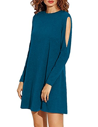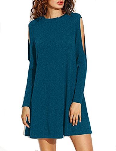 Sherosa Women's Cold Shoulder Long Sleeve T-shirt Dress Basic Shift Dress,Lake Blue L