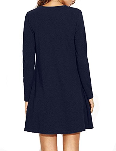 Sherosa Women's Dress Long Sleeve Stretch Solid A-Line Short Tunic Dresses,Navy Blue XL