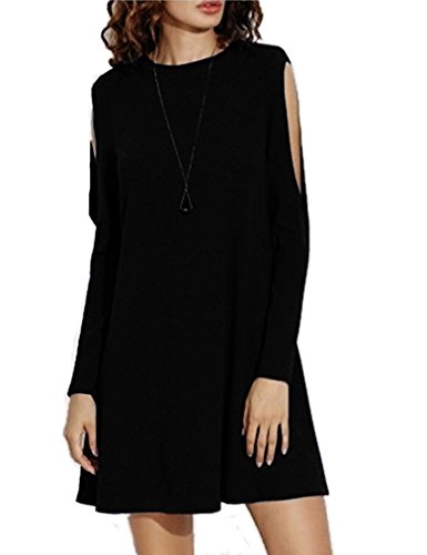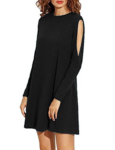 Sherosa Women's Cold Shoulder Long Sleeve T-shirt Dress Basic Shift Dress,Black XL