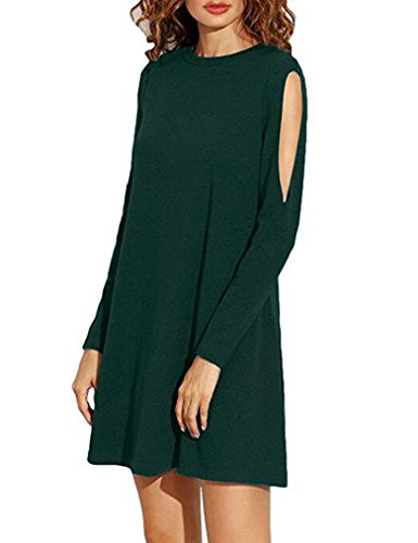 Sherosa Dresses For Women, Womens Plain Long Sleeves Casual Loose Fitted Tshirt Dress,Dark Green L