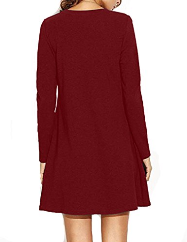 Sherosa Fowly Dress, Basic Long Sleeve Casual Loose T-Shirt Dress,Wine Red XL