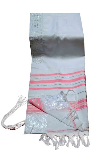 -. Title : Acrylic Tallit (imitation Wool) Prayer Shawl in Soft Pink and Silver Size 24" L X 72" W