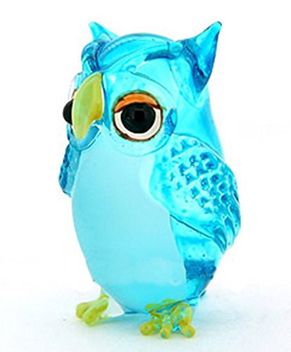 Lampwork COLLECTIBLE MINIATURE HAND BLOWN Art GLASS Single Owl Light Blue FIGURINE by ChangThai Design