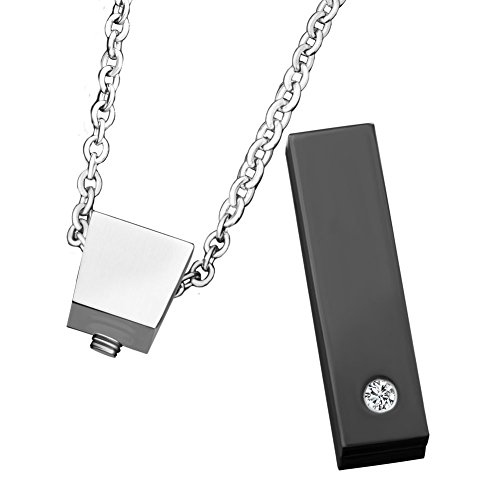 LuckyJewelry Black Single Cube Crystal Urn Pendant Necklace Crematio Ashes Keepsake Memorial