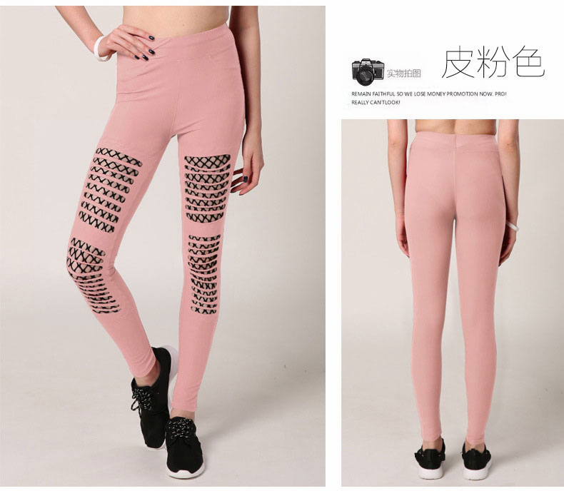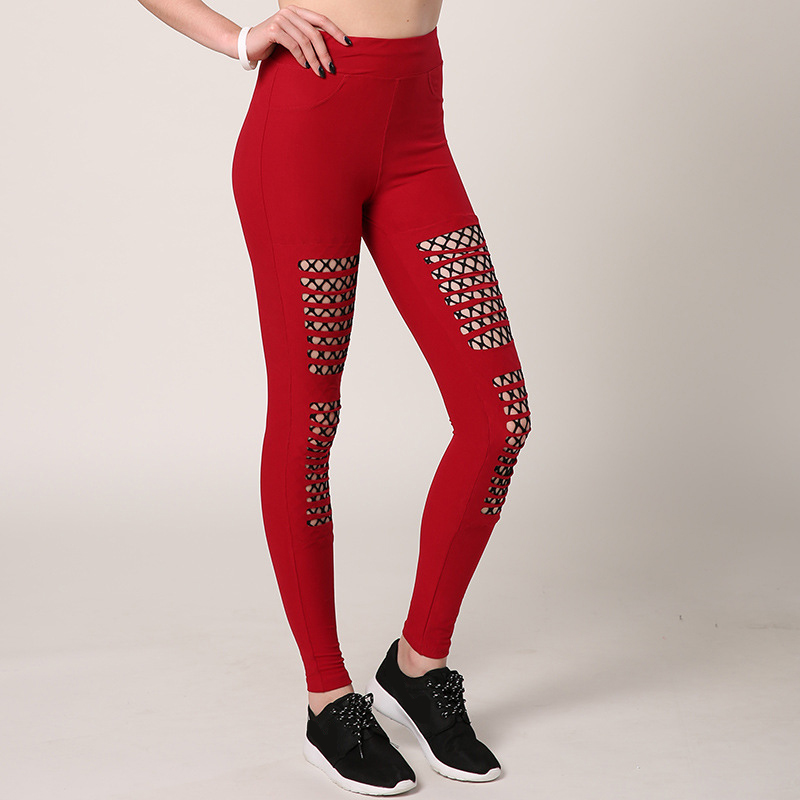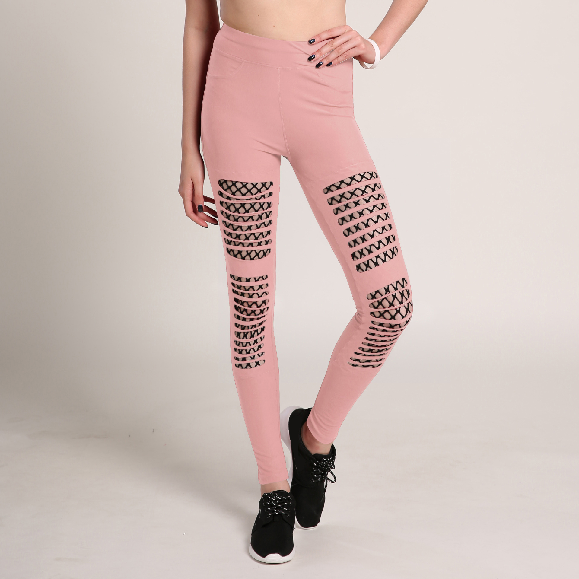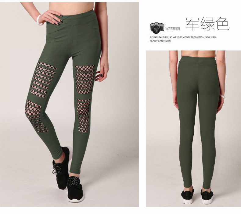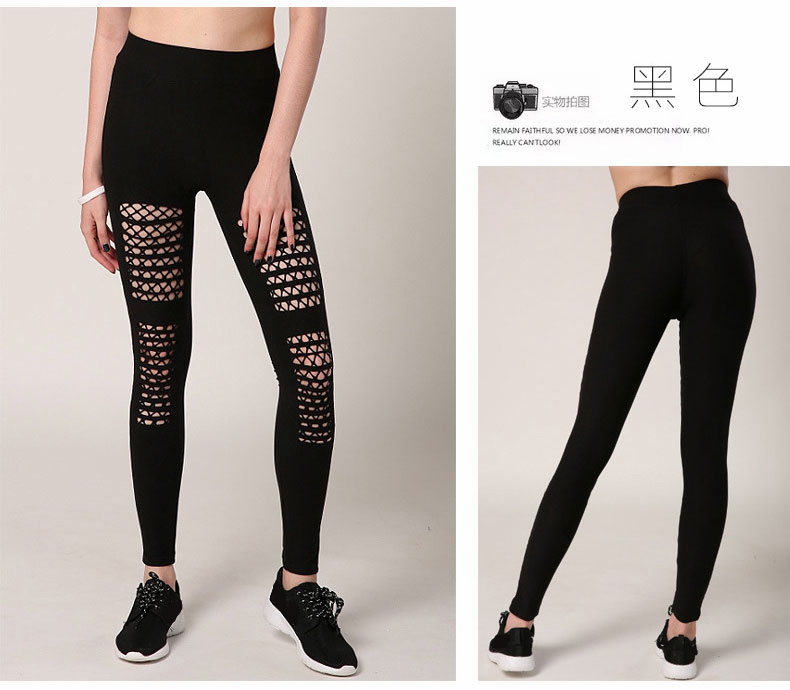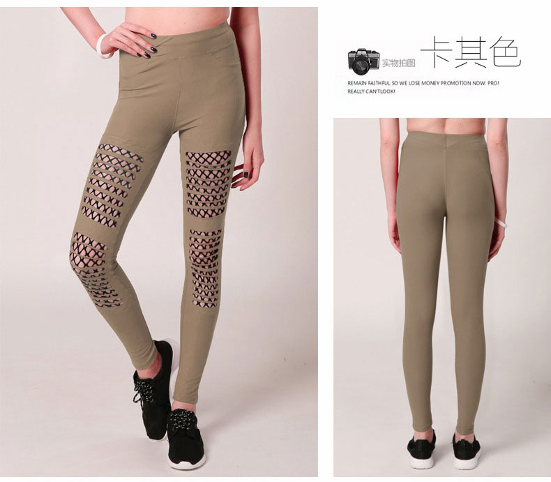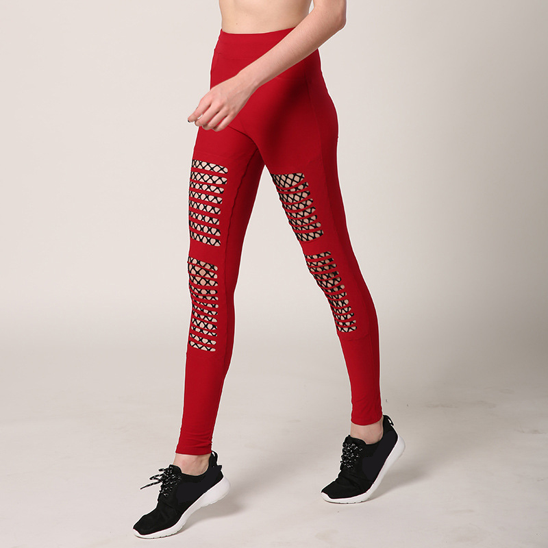 Women Fitness Yoga Pants Slim Grid Hallow Out Sexy Leggings Gym Running Stretchy Tights Breathable Quick Dry Training Capris