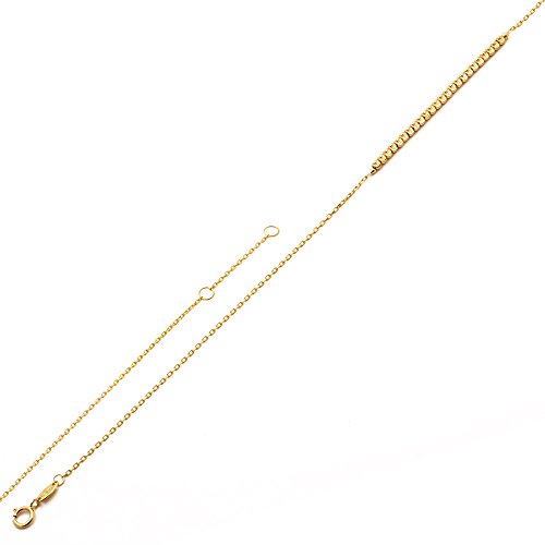 -. Title : LoveBling 10K Yellow Gold .50mm Diamond Cut Rolo Chain with Diamond Cut Moon Anklet Adjustable 9" to 10"