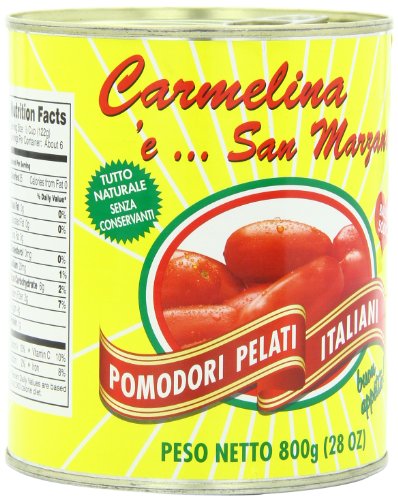 Carmelina San Marzano Italian Whole Peeled Tomatoes in Puree, 28 ounce (Pack of 6)