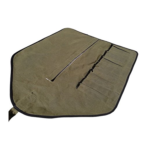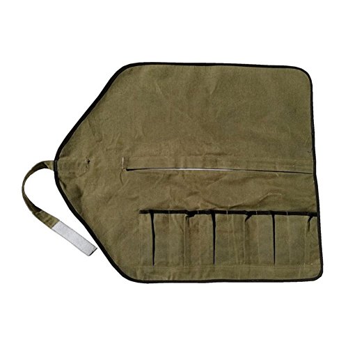 Tool Roll Pouch Bag Professional Chef Knife Bag Waterproof Waxed Canvas Rolling Organizer with 6 Slots by Handmade and Sewn (green, 26.8" W 14.6")