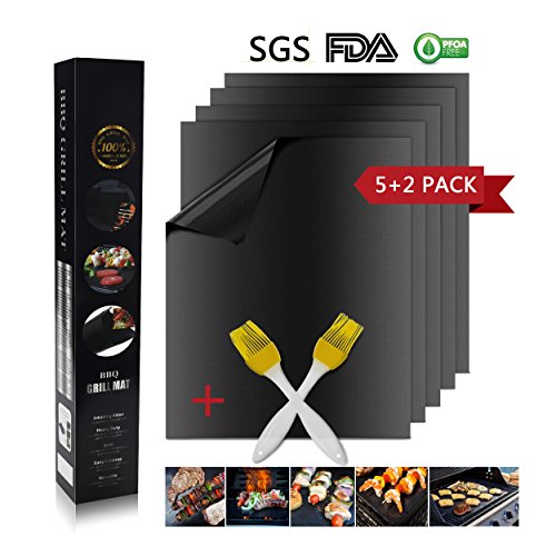AI-Orange Grill Mat Set of 5 with Two Free Cooking Brush(Random Color)- Non Stick BBQ Grill&Bake Mat, Safe,Reusable, Heavy Duty,Easy Cleanup, Versatile for Charcoal, Gas,Electric and More.