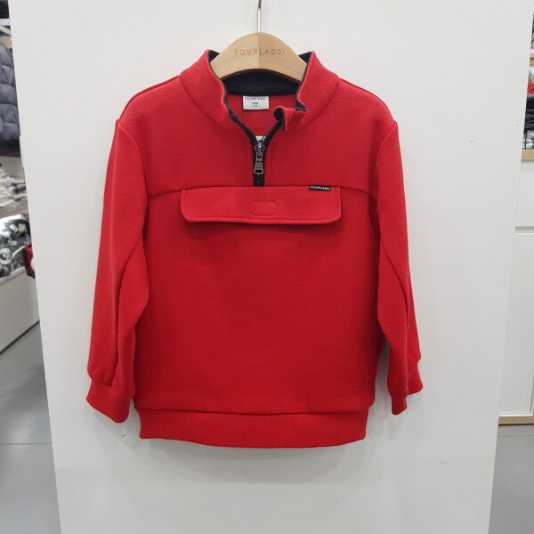 지퍼와 포켓으로 포인트를 준 레드컬러의 맨투맨입니다특양면 기모소재를 사용하여 톡톡하고부드러운 터치감으로 트레이닝 바지와데님팬츠에 코드해도 잘 어울리는아이템입니다