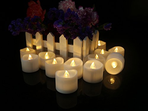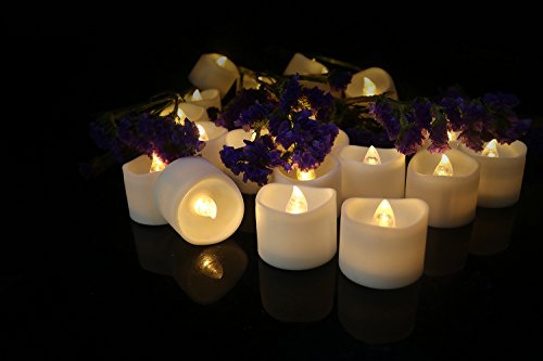 Cozeyat 24pcs Soft Warm White Battery Tea Lights, Romantic Flameless LED Candles for Wedding Receptions, Ceremony, Bridal Shower, Dinner Table Setting for Proposal, Honeymoon Travel ( with petals )