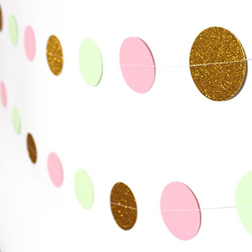 - POLKA DOT GARLAND- 2pcs peach glitter gold mint mixed color of polka dot garland. Paper Garland Length: approximately 6.5 feet. Usually used as wedding, birthday party, baby shower, nursery christening, festival, holiday, celebration decorations.
