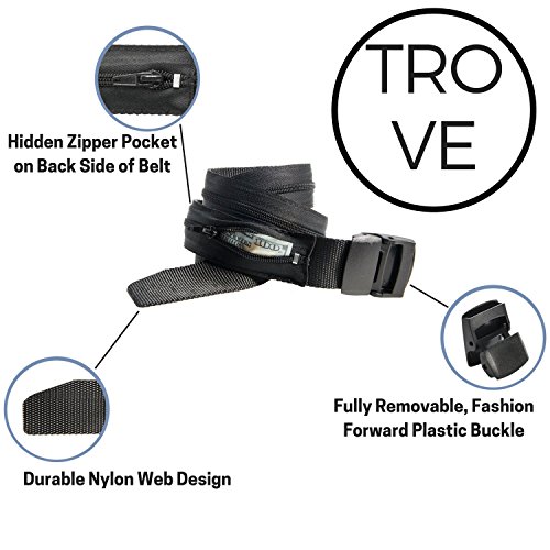 Product Description The Trove Travel Belt was designed for 21st Century Traveling in Mind! Let's face it, traveling is STRESSFUL! Especially when transporting money and other valuables through the Airport, hotels, and many other crowded areas. With the Trove Travel Belt, you can easily hide your valuables in your belt and don't have to worry about losing track of your money, Bitcoin Wallet, or other important documents you may want to secure. A regular wallet or purse is an EASY target for would-be thieves and bad actors. The Trove Travel Belt provides an excellent diversion for your valuable, and looks great and is comfortable as well! Keep your Peace of Mind and travel with the Trove Travel belt for money and other valuables. 0