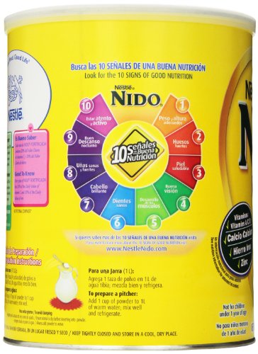 Every glass of NIDO Fortificada has 20% of the Daily Value of Vitamin C, 30% of the Daily Value of Iron, and 30% of the Daily Value of Calcium (%DV based on children less than 4 years old)