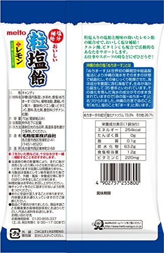 原材料:砂糖(国内製造)、水あめ、食塩(ぬちまーす100%)、植物油脂、濃縮レモン果汁/酸味料(クエン酸)、ビタミンC、香料、乳化剤、着色料(クチナシ、紅麹)