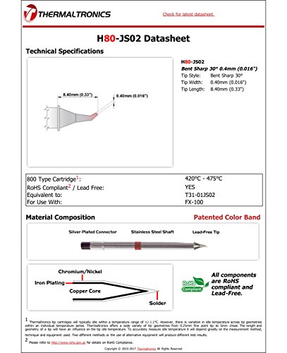 Thermaltronics H80-JS02 Bent Sharp 30deg 0.4mm (0.016") interchangeable for Hakko T31-01JS02