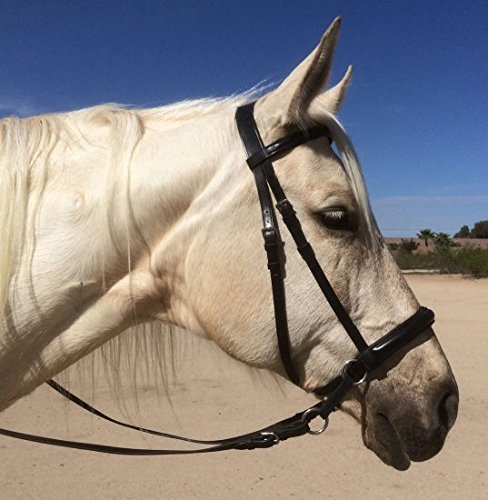 English Leather Crossover / Crossunder Bitless Bridle Headstall with Reins