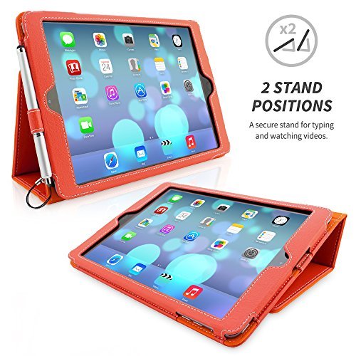 Snugg iPad Air Case - Smart Cover with Flip Stand & Lifetime Guarantee (Orange Leather)