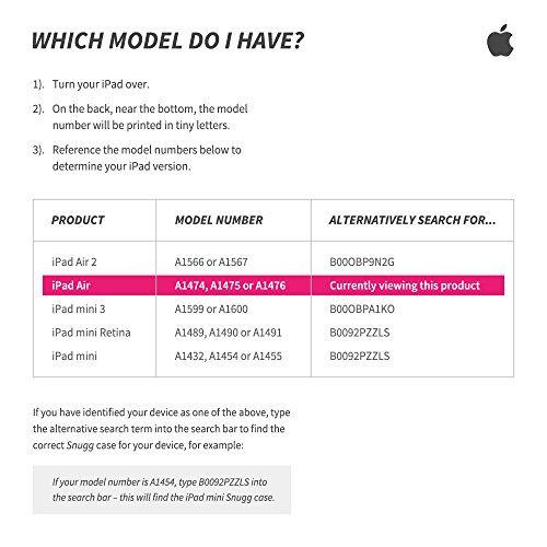 Specially designed for the iPad Air, 2013 edition, (model numbers A1474, A1475 or A1476) with precise cut-outs and openings for easy access to all of the ports and features