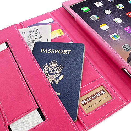 Protect your iPad in style with the premium Snugg iPad Air leather case. Made from the highest quality PU leather with a soft untuck fiber interior it will protect your iPad from scratches and scrapes. The elastic hand strap gives you greater grip of the case and the built in stand supports the iPad in different positions. As well as having access to the iPad's external ports and features, the case automatically wakes and puts your iPad to sleep. Trust the Snugg promise to deliver a perfect fit, robust protection and a quality finish.