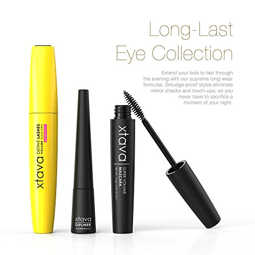xtava Super Volume Mascara is utterly flake-proof, so you never have to sacrifice a moment of your night on mirror checks and touch-ups. The expert long-wear formula gives lashes an instant volume boost that lasts as long as you do. Formulated to grip, coat, and thicken each individual lash, Super Volume adds bulk at the root and creates beautifully framing fringe. Place the wand at the base of the lashes, and wiggle it side to side to add body and lift.Feature