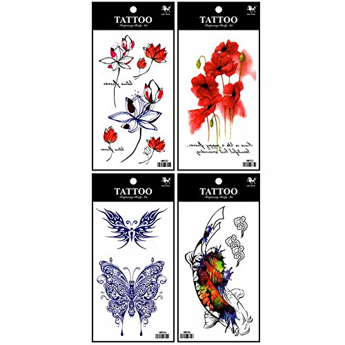 Wonbeauty Fake and real temp tattoo stickers 4pcs in one package, it's including lotus,flowers,butterflies and fish long last and realistic temp tattoo sticker