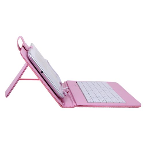 This high-quality synthetic leather case with laptop-style keyboard is an essential accessory for your new 7-inch tablet computer. This protective cover is multi-functional, allowing you to stand up your tablet, secure it during transport, and lets you type on it as you would with a normal laptop or netbook. This case is equipped with a full QWERTY keyboard, pockets for holding up to two styluses, and an extendable kickstand. The ideal combination of protection and functionality for the discerning tablet owner.