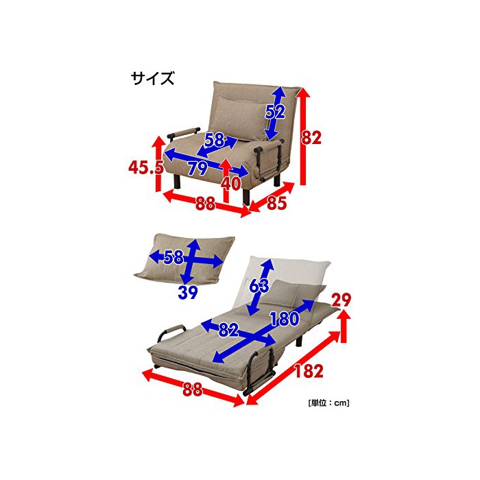 본체 사이즈:소파 시=폭88×(길이)깊이85×높이82cm,베드 시=폭88×(길이)깊이182×높이29cm