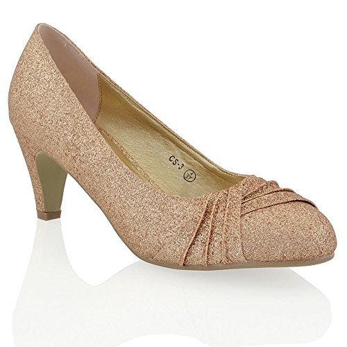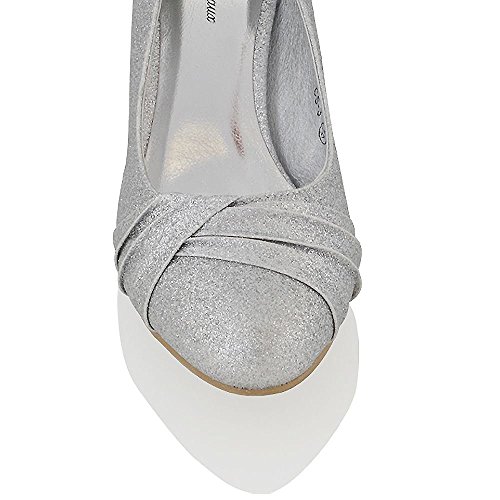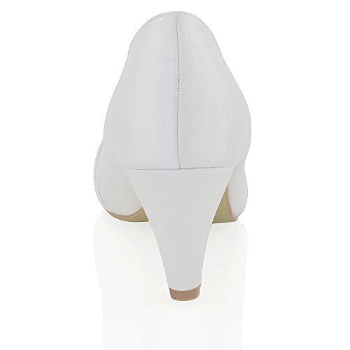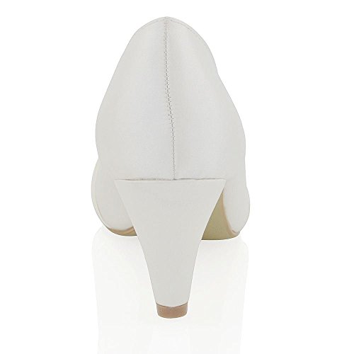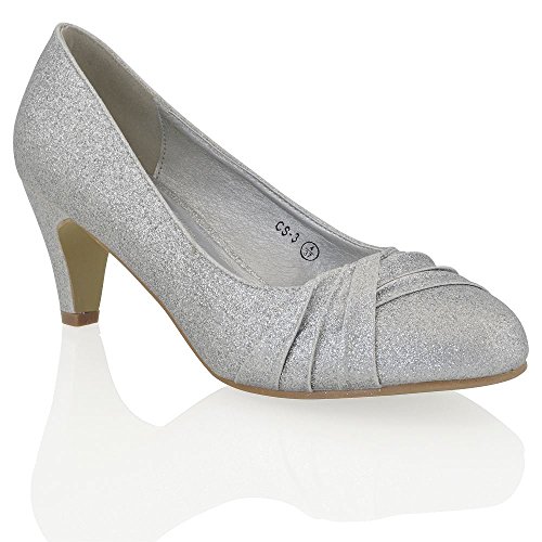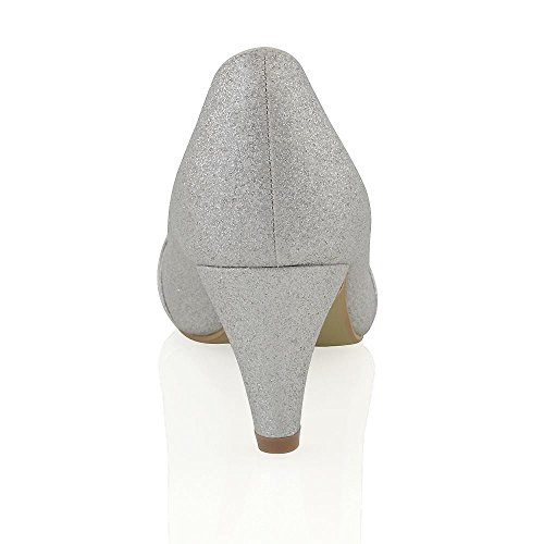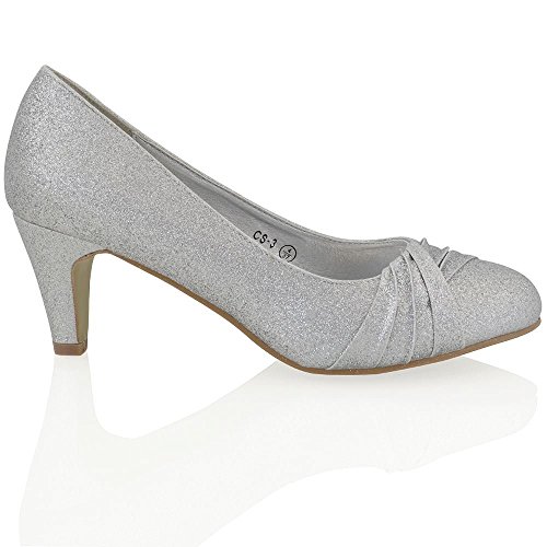 Product DescriptionEssex Glam - Women's Low Heel Bridal Court Shoes - High Quality Materials - 2.6 Inches / 6.5 CM Heel Height - Slip On - Beautiful colour such as Black Satin, Ivory Satin, White Satin, Gold Glitter Silver Glitter - Ideal for Wedding, Bridal, Bridesmaid, Prom, Parties, Event More0