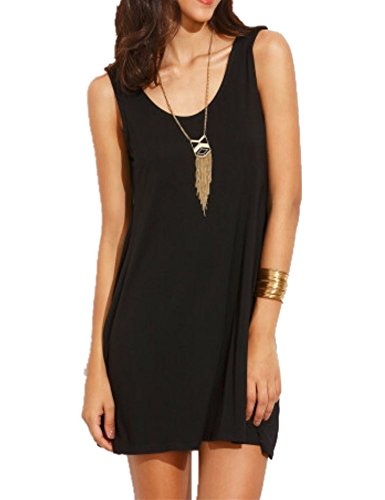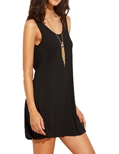 Haola Womens Sleeveless Mini Dresses Backless Striped Black Shift Dress S Black