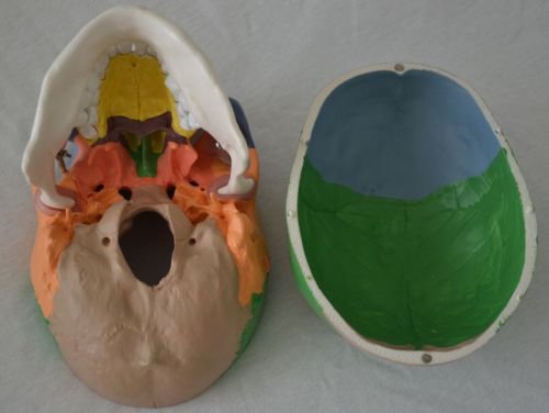 Wellden Anatomical Skull Model, Didactic Color Painted, 3-Part, Life Size