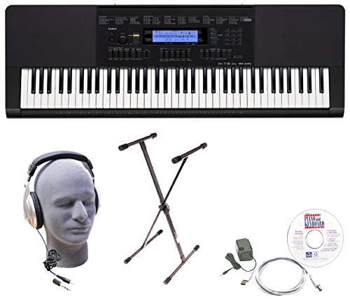 Studio : Casio Publisher : Casio Binding : Electronics Product Description Casio's WK245 76 Key Keyboard offers 76 Piano-style touch-response keys, 48 note polyphony, 600 Tones, 180 Rhythms, 32 Registration memory and 152 Songs this Casio Workstations follows a long tradition of Casio Workstations that meet the demands of players from beginner to pro. This pack comes with everything you need to get started right away. The Samson HP30 closed back studio headphones feature a comfortable, heavily padded headband and ear cups with 40mm drivers and a frequency range of 20 to 20,000hz. These are loud earphones with an impedance rating of 32 Ohms and a 105 dB / mw sensitivity rating. The keyboard stand is a heavy-duty, single braced, steel, keyboard stand that will hold 49, 61, 76 and 88-key keyboards with a maximum weight of 130 lbs. Secure-Lock height adjustment from 25.25 to 38.75 inches for seated to standing performance positions. Non-Marking rubber end caps. There will be no need for batteries either with the included power supply. This package also comes with eMedia Piano and Keyboard Starter software USB cable. The software includes over 50 step-by-step lessons starting from basics such as hand position to note reading, time signatures, playing with both hands and more! Piano teacher Irma Justicia has taught at the renowned Juilliard School of Music. Learn from either the music notation or an animated keyboard. Songs include recorded audio, variable-speed MIDI and MIDI accompaniments. When paired with a USB 2.0 Cable, which is included, this software can work in with your MIDI keyboard so you can get specific feed back on playing mistakes. Also includes a digital metronome and recorder. 0