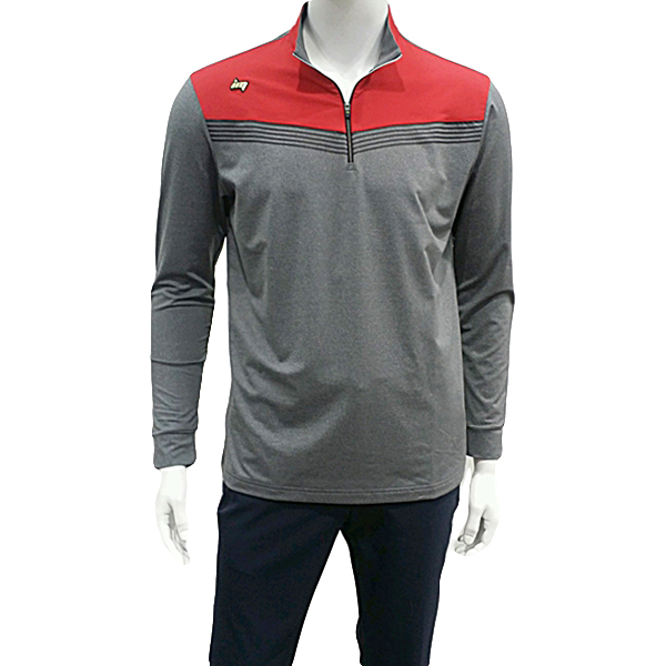 상단 우븐패치한 반집업 스타일로 우븐 밑부분에 무광 프린트로 포인트를 주어